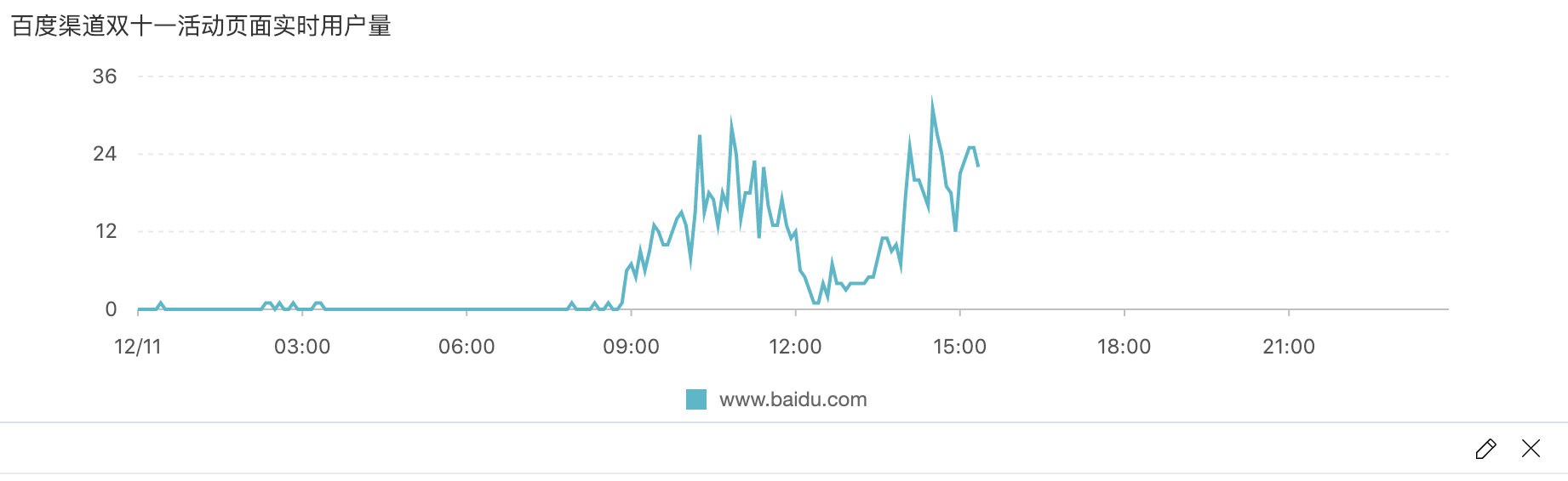 作为电商商品运营人员,您可以实时查看不同商品活动页面的浏览人数。如来自百度的活动页面实时用户数据。