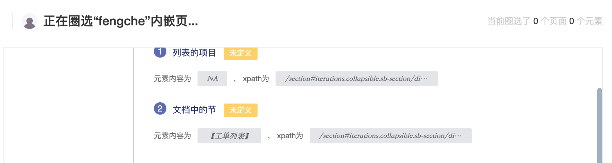 嵌套元素:即一个具有多级节点(例如一个文章列表)的嵌套元素。点击时,由于存在多级节点,故有几种可能的对象:1、某个具体的内容;2、整个列表;3、列表中其他。对于嵌套元素来说,我们将采集到的对象,直接展示出来,如下图: