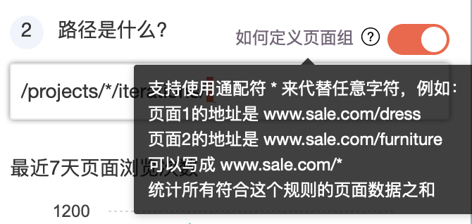 a.「路径」最右侧的开关开启时,可以通过在「路径」中使用「*」来做通配符,达到圈选多个类似页面的目的: