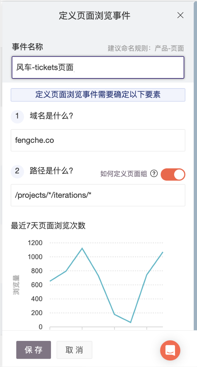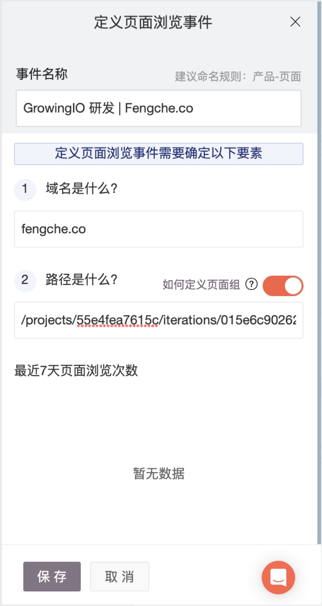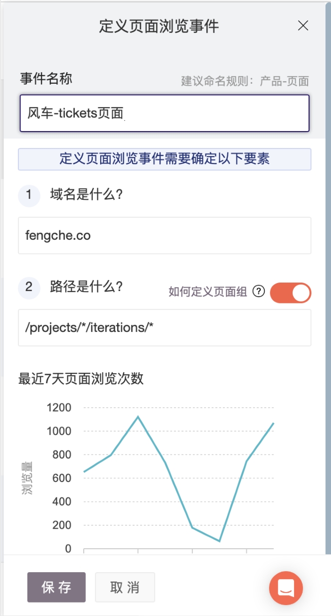 注意:带query的页面浏览事件默认不进行回溯,会从您定义或者修改保存后,才开始进行页面浏览事件的计算。