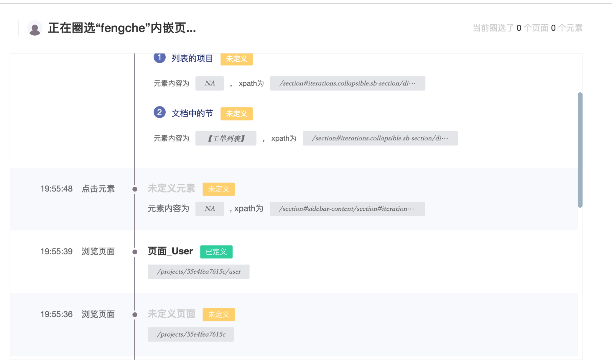进入圈选页面后,页面中会实时展示您在微信内嵌页中的操作,如下图。
