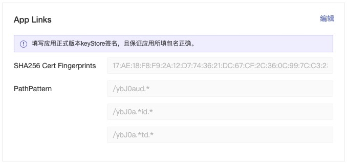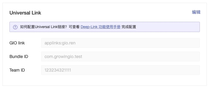 1.在UniversalLink模块,单击模块右上角的编辑,进入配置 UniversalLink界面。