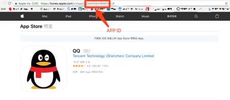 图示为苹果商店ID获取方式。
