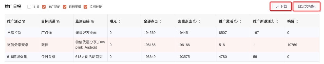 推广激活:通过监测链接监测到发生激活的设备。