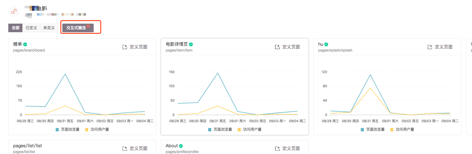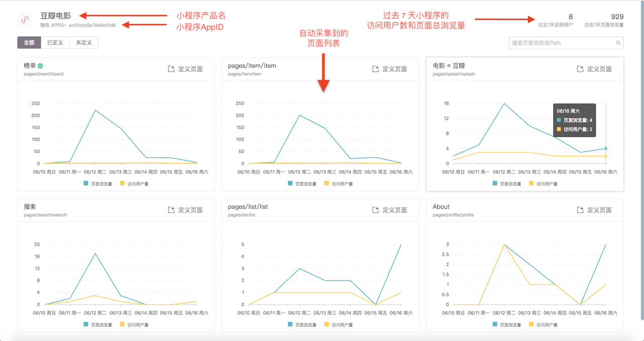当前要定义事件的小程序自动采集到的页面列表及其数据