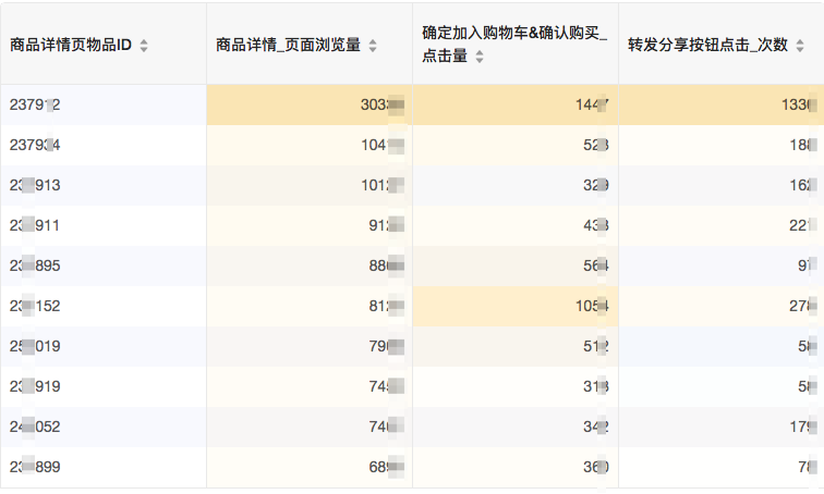 分析场景示例:快速分析商品的转化率: