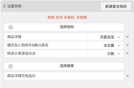 页面级变量同时可以拆分页面上的定义的点击事件:商品详情页上面常见会存在“加入购物车”、“确定购买”按钮,定义“加入购物车”&“确定购买”,这个行为指标同时可以使用这个点击元素所在页面的页面级变量做维度拆分。