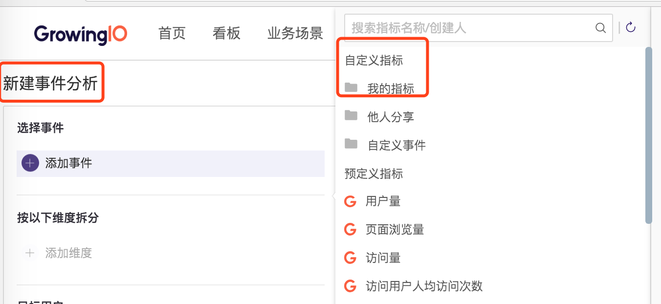 事件分析选择指标&维度