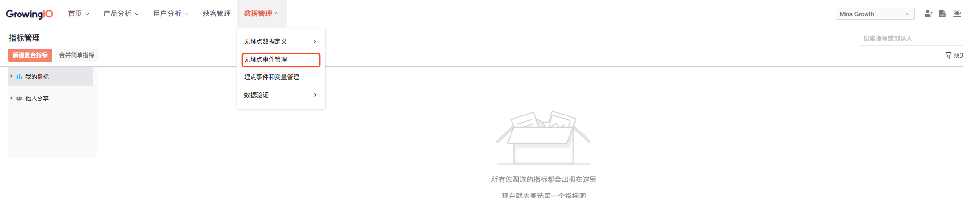 无埋点定义的事件指标的管理