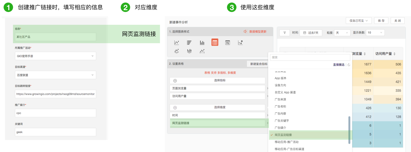 通过「广告监测」设置网站推广的维度值