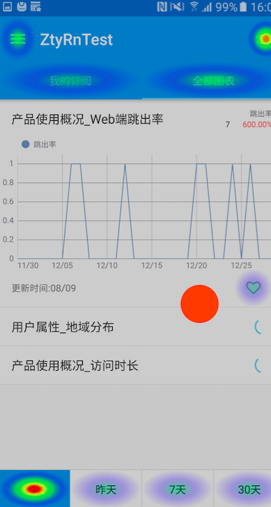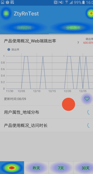 移动端热图暂不支持更改时间段,目前显示的最近72小时(3天)的点击数据;