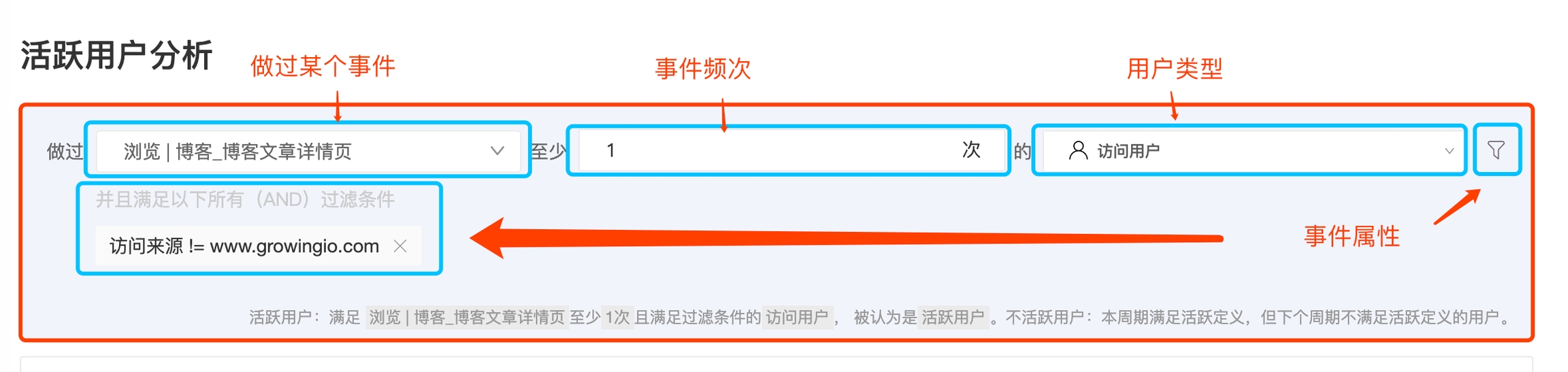 一. 在顶部导航栏选择“用户分析 > 活跃用户分析”,进入活跃用户分析页面。