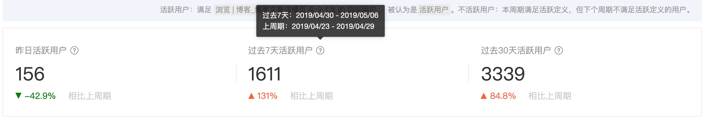 三. 展示符合活跃定义条件的昨日、过去 7 天、过去 30 天的用户量,并且分别提供相对上周期的变化比率。